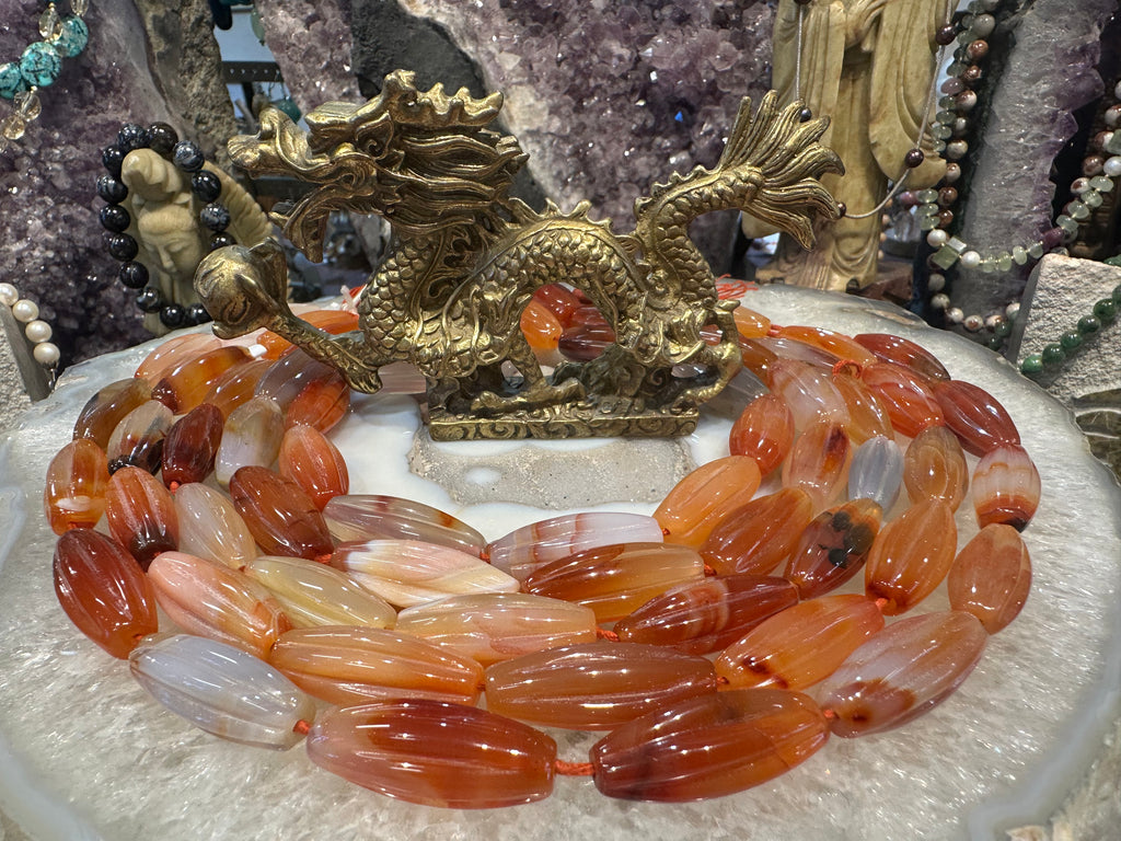 Carnelian carved long melon 28mm