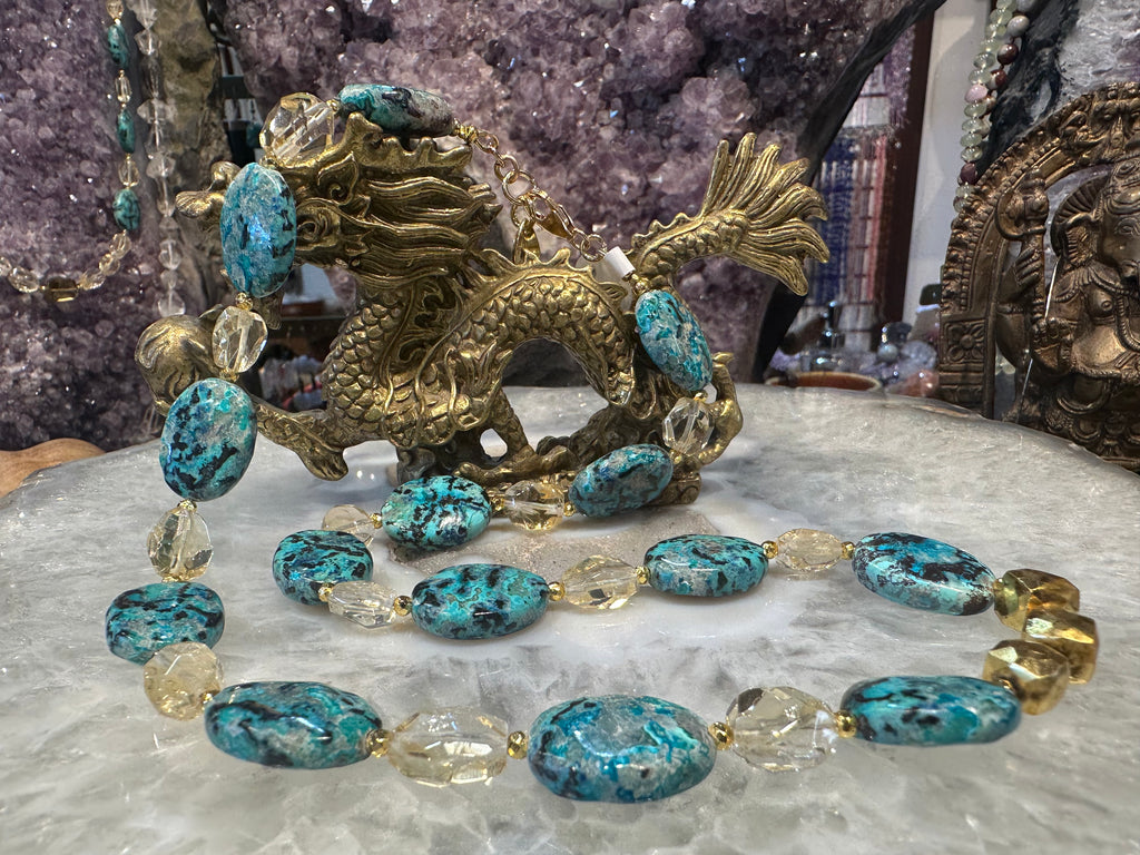 Chrysocolla & citrine cut gemstone necklace