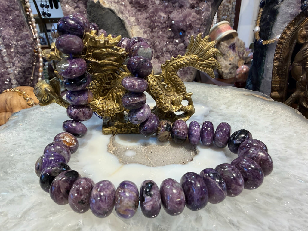 natural purple Russian Charoite with beautiful chatoyant swirls and patterning